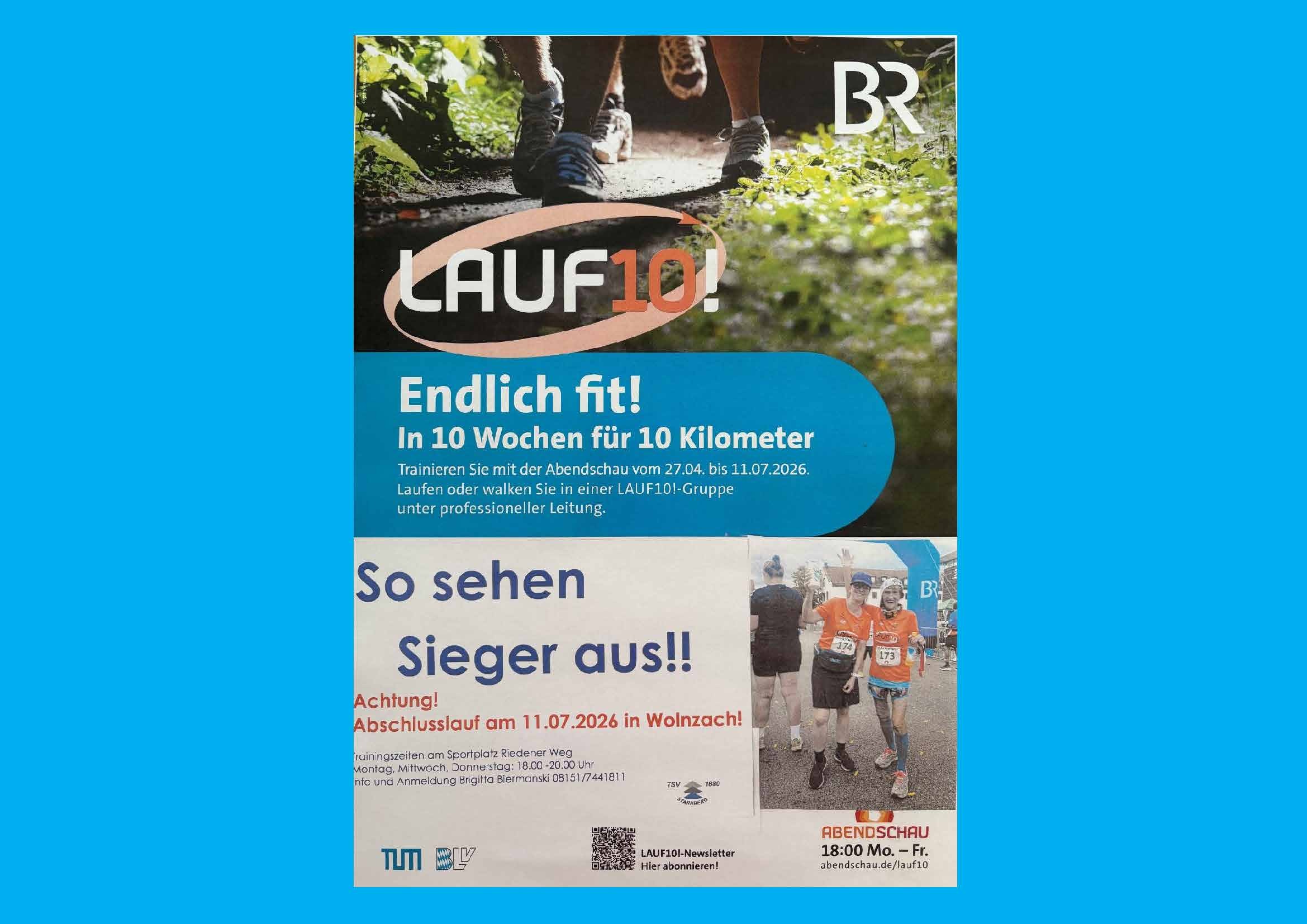 10 Kilometer in 10 Wochen, das können alle schaffen - mit der Sportaktion des BR: LAUF10! (Beitrag BR-Fernsehen Lauf10). Diese findet jedes Jahr im Frühsommer statt und der TSV Starnberg ist erneut Partnerverein!