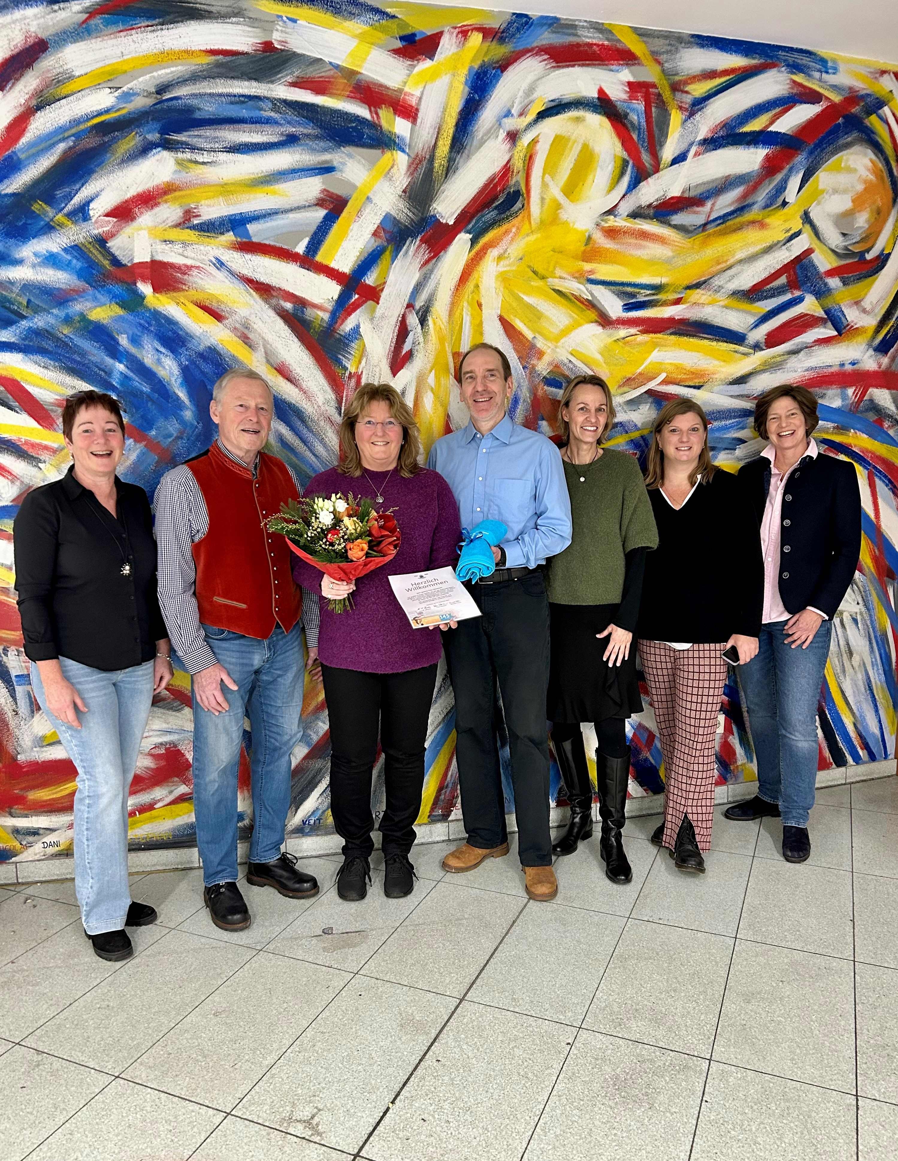 Geschäftsstelle begrüßt. Neben Urkunde und Blumenstrauß gab es als