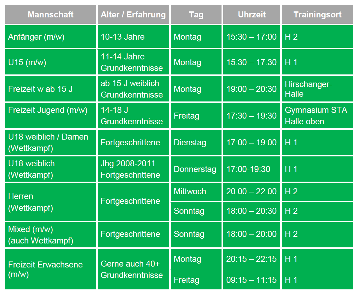 TRAININGSZEITEN: